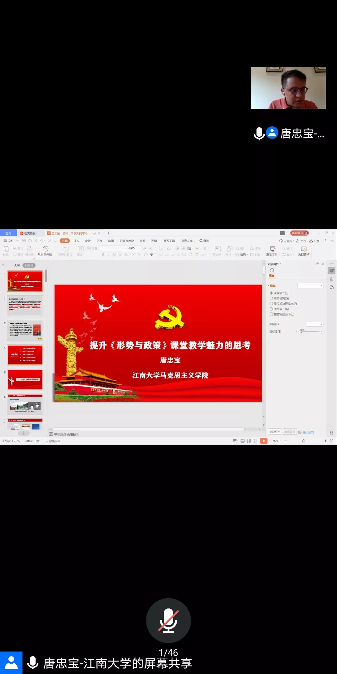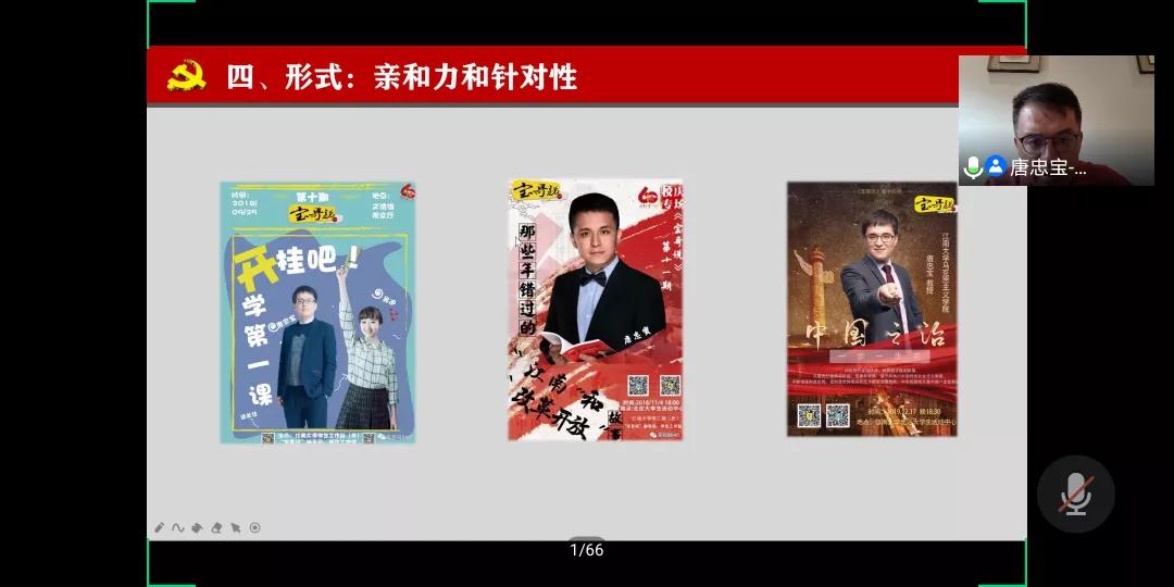 7月7日下午,中央电视台《百家讲坛》主讲嘉宾、中宣部全国“基层理论宣讲先进个人”、教育部全国“高校网络教育名师”、江南大学yl6809永利集团唐忠宝教授应yl6809永利集团邀请,与全区思政课教师相聚云端集体备课,并作了“提升《形势与政策》课堂教学魅力的几点思考”的专题报告。本次线上集体备课会由yl6809永利集团院长李春晖主持,全区各高校思政课教师200余人参会。