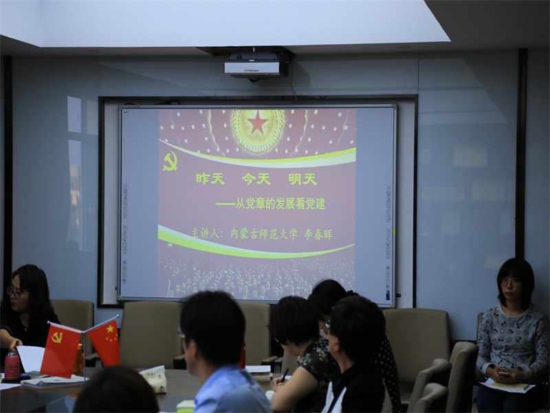 9月30日下午,yl6809永利集团院长李春晖在学院会议室507,以“昨天 今天 明天—从党章的发展看党建”为题,为学院全体教师讲授“不忘初心、牢记使命”主题教育专题党课。校第五主题教育指导组周绍渊同志到会指导,党总支书记贺瑞主持。