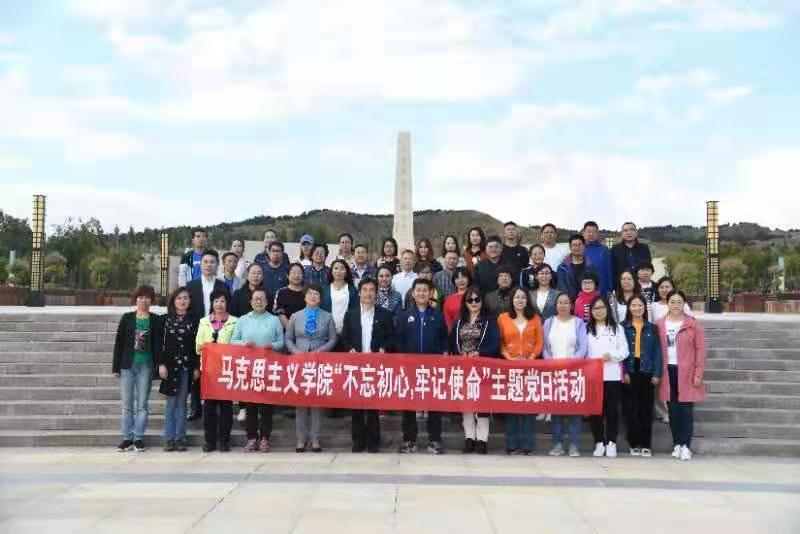 按照yl6809永利官网集团“不忘初心、牢记使命”主题教育在全校开展的部署要求,进一步巩固主题教育成果,激励思政课教师、党员、干部时刻“守初心、砺修养、担使命、勇前行”,9月22日下午,yl6809永利集团党总支书记贺瑞、院长李春晖带领全院教职工和全体研究生党员赴大青山红色文化公园开展“不忘初心、牢记使命”主题党日活动,进行现场学习。