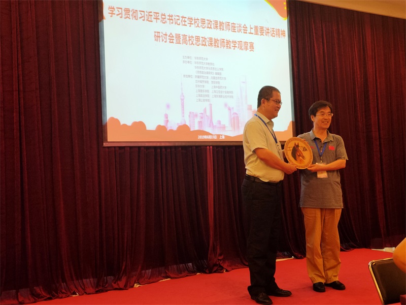 为深入学习贯彻习近平总书记在学校思想政治理论课教师座谈会上重要讲话精神,落实立德树人的根本任务,用习近平新时代中国特色社会主义思想铸魂育人,切实提高高校思政课教学质量,办好思政课。2019年6月14日到15日在上海华东师范大学举办了“学习贯彻习近平总书记在学校思政课教师座谈会上重要讲话精神研讨会暨高校思政课教师教学观摩赛”。我院院长李春晖、党总支书记贺瑞带队参加活动。本次活动分两个阶段进行:教学观摩赛与教学研讨会。