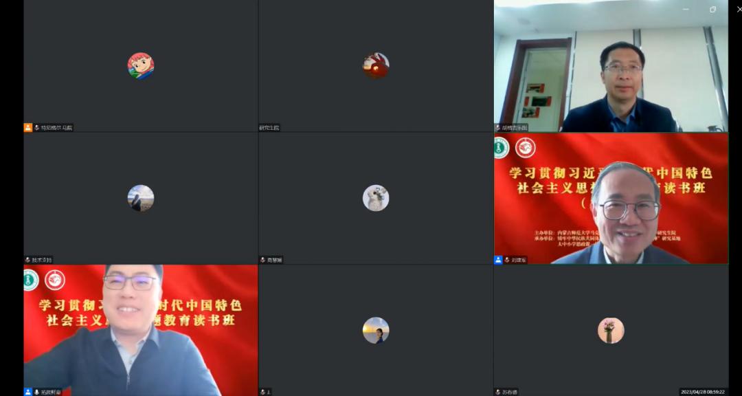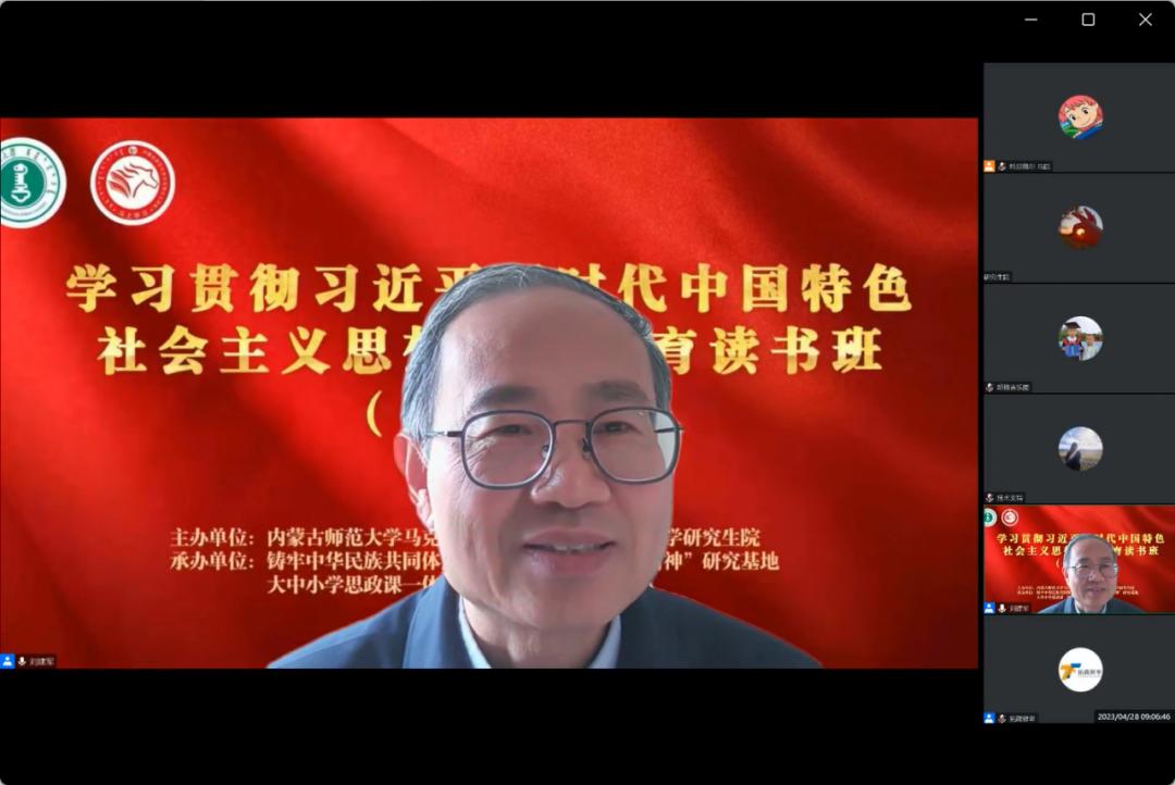 4月28日上午,yl6809永利集团学习贯彻习近平新时代中国特色社会主义思想主题教育读书班(第五期)在线上召开。本次主题读书班邀请中国人民大学yl6809永利集团博士生导师、马克思主义理论研究和建设工程思政课重点教材《马克思主义基本原理》首席专家,教育部长江学者特聘教授刘建军教授作题为“二十大报告中几个重大理论问题解读”的专题讲座。yl6809永利官网集团副处级及以上干部、研究生院、yl6809永利集团全院教职工、研究生参加学习。