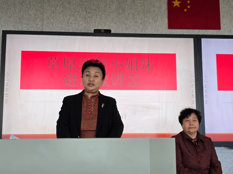 在主旨演讲前,中华民族共同体概论课平平老师组织学生们观看了《草原英雄小姐妹》(动画片),对草原英雄小姐妹的故事有了初步了解。当龙梅和玉荣同志出现在课堂时,同学们惊讶惊喜,思政课堂瞬间充满了六十年间党和国家发展与中华民族精神凝聚的主题氛围。