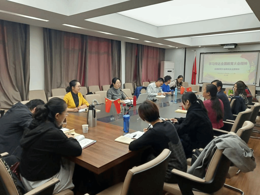 支部书记赵图雅围绕立德树人根本任务,从全国教育大会的基本概况、重大意义及主要精神等三个方面对全国教育大会精神进行了全面深刻的解读。对全国教育大会召开的时间、规格及内容作了详细介绍。通过此次学习,大家对教育大会的精神有了更加全面深刻的认识。