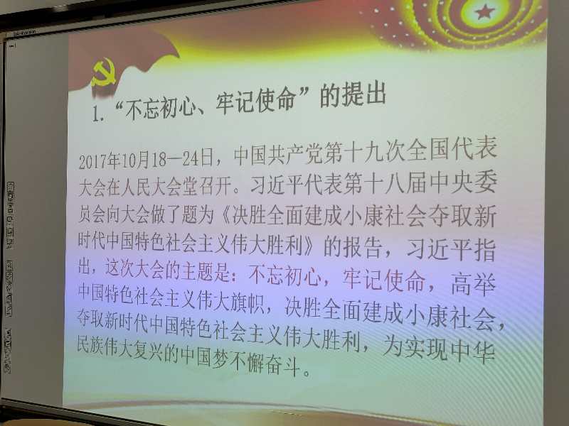 在讲座中,党总支书记贺瑞围绕不忘初心、牢记使命,党的政治建设和做新时代合格共产党员三个部分进行了深入浅出的讲解,他强调,全体教师要以习近平新时代中国特色社会主义思想为指引,守初心担使命找差距抓落实。牢记为中国人民谋幸福,为中华民族谋复兴的初心和使命,坚持深入调查研究,坚持深入学习思考,争做新吋代优秀的思想政治理论课教师。