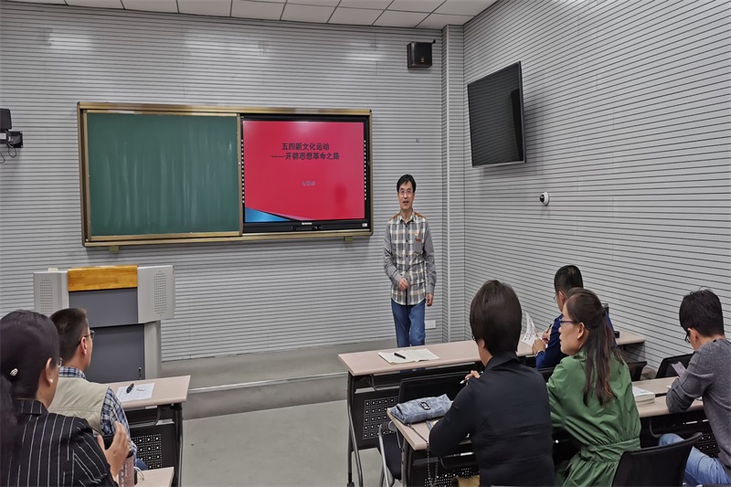 学院全体教工党员和入党积极分子首先聆听了齐百顺教授、达布希拉图副教授和张瑞军副教授关于五四运动的精彩讲解。大家受益匪浅。