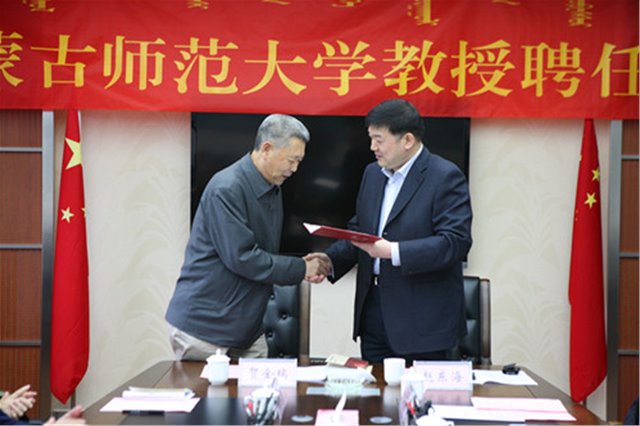 校党委委员、副校长赵东海代表学校向贺金瑞教授颁发聘书并讲话。聘任仪式由校办主任霍日查主持。学校相关职能部门负责人、我院三位领导参加了聘任仪式。