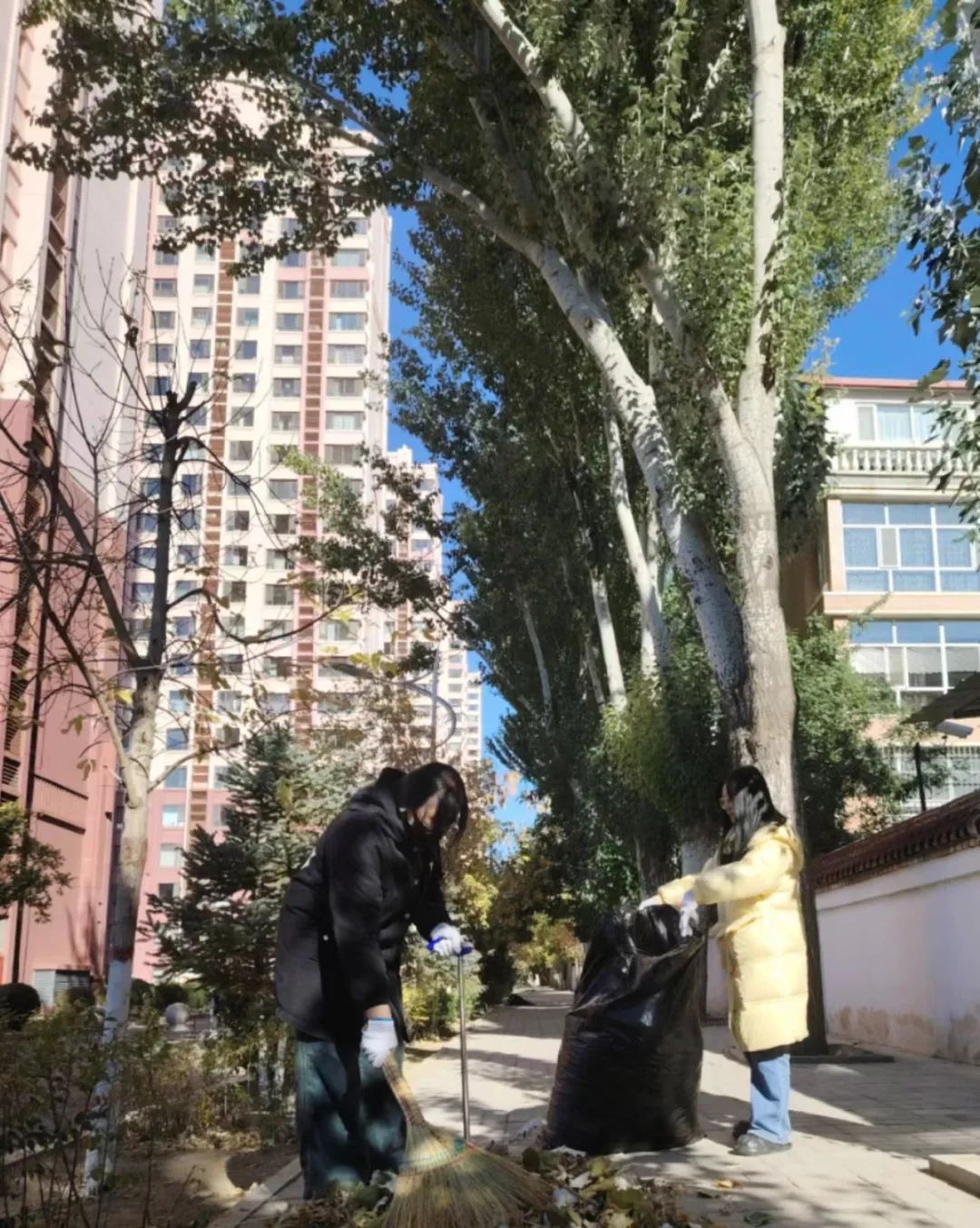 yl6809永利集团志愿者服务队同学到达赛罕区高院社区进行环境清扫活动。