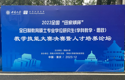 12月3日,由“田家炳杯”全日制教育硕士专业学位研究生教学技能大赛专家委员会指导、田家炳基金会冠名,西南大学主办的2023年全国“田家炳杯”全日制教育硕士专业学位研究生学科教学(思政)教学技能大赛在西南大学圆满落下帷幕。