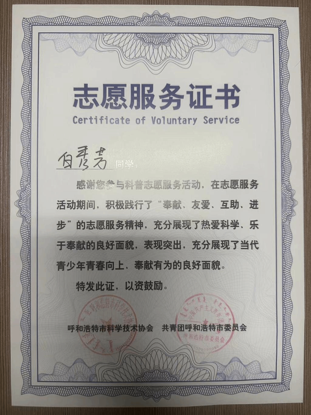 在第3届“外教社,在词达人杯”全国大学生英语词汇能力大赛中荣获参与奖并积极参加志愿服务到梦分数已达到505分。