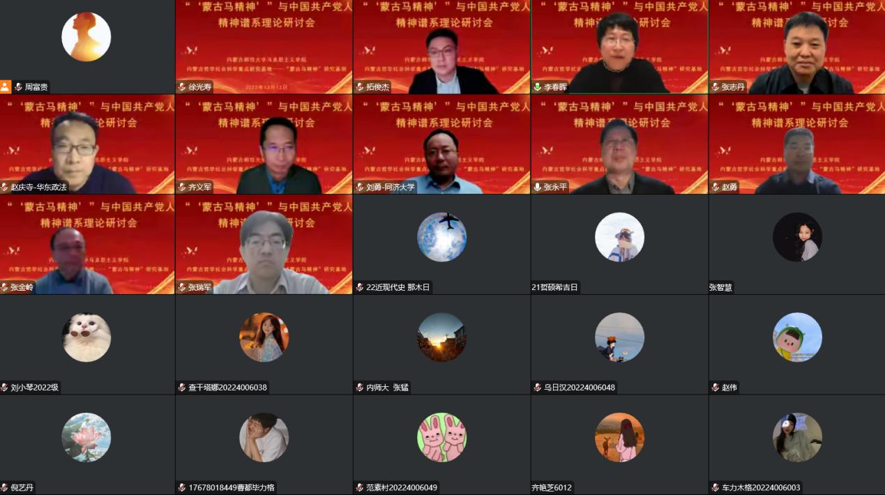 12月12日,“蒙古马精神”研究基地举办“‘蒙古马精神’与中国共产党人精神谱系”理论研讨会,本次研讨会由自治区党委宣传部理论处指导,由yl6809永利集团和自治区哲学社会科学重点研究基地——“蒙古马精神”研究基地承办。来自区内外的十余位专家学者在线上做主题报告和交流发言。开幕式由yl6809永利集团院长齐义军教授主持。